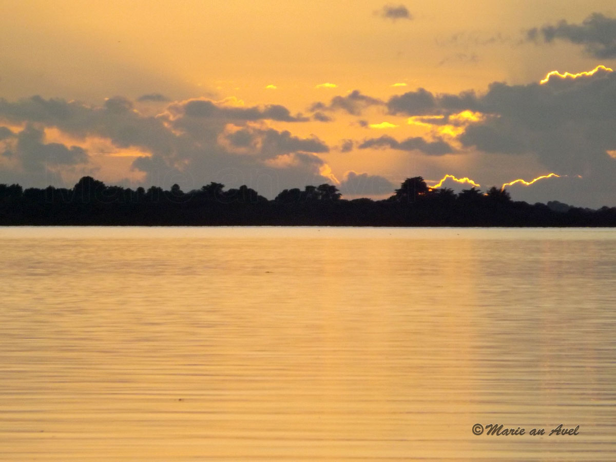 Marcher sur les sentiers déserts à cette époque de l’année, recevoir cette luminosité puissante qui s’insinue en moi et me transporte, regarder les verts, les bleus, les gris de payne, si profonds, si nuancés par endroit, qu’ils me font tressaillir ; j’aime ces pins penchés au-dessus de la mer, cette petite forêt éclairée d’or et de cuivre, cette pointe de rochers ou apparaissent les veilleurs des marées ; j’aime être entre la terre et l’eau, tout près d’eux ; faire une halte au bourg, une rencontre, échanger quelques mots, seuls – ensemble, assis au soleil sur une terrasse abandonnée du monde, presque hors du temps…