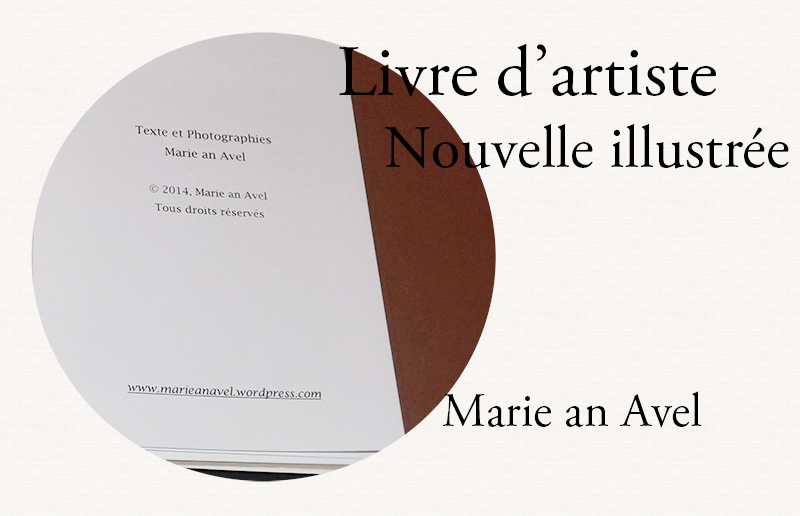 La Lumière égarée, nouvelle illustrée de photographies est le premier ouvrage de Marie an Avel présenté en livre d’artiste. Ce livre singulier est une expression artistique qui utilise le livre comme support.