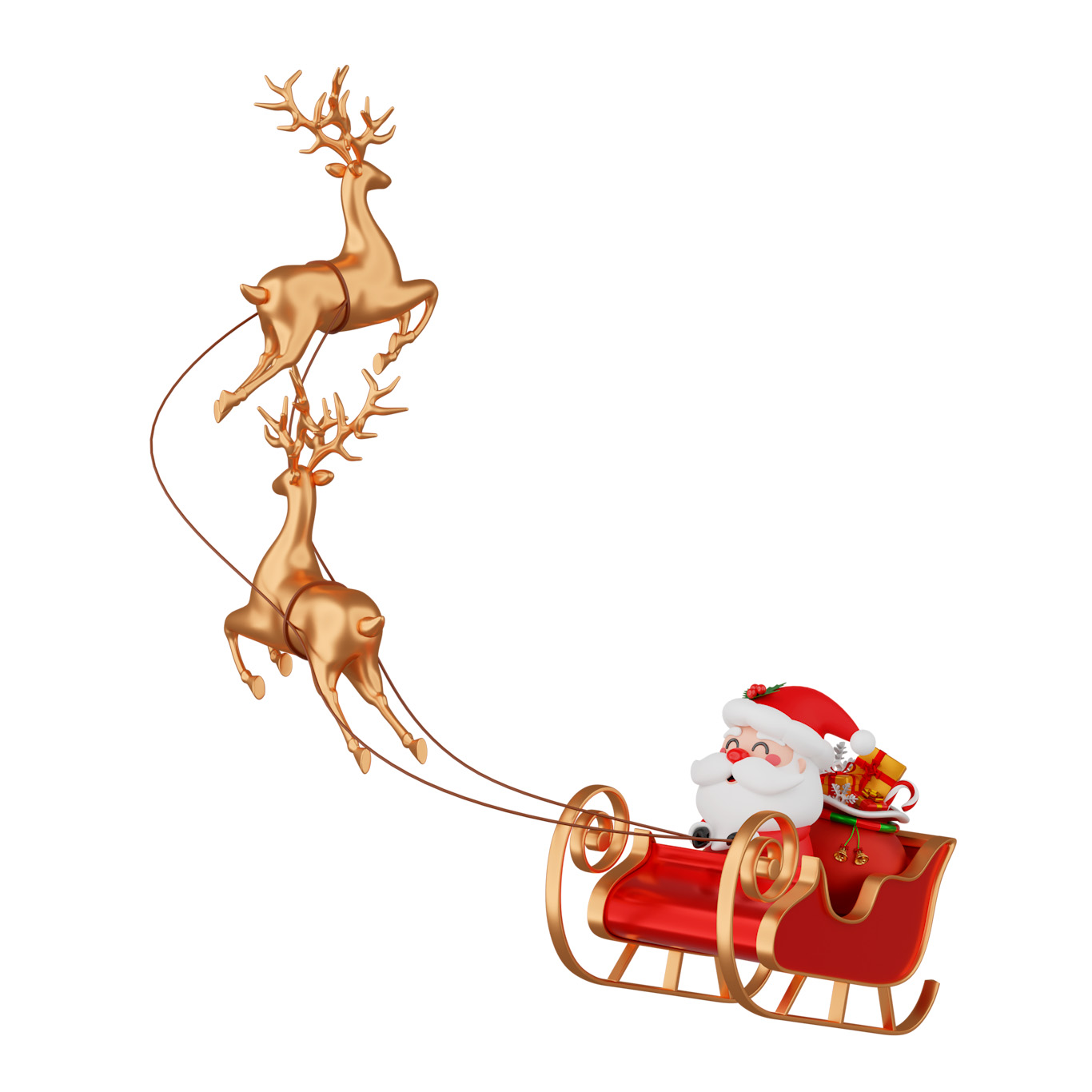 Ses coursiers volaient comme s’ils avaient des ailes, tandis qu’il chantait pour les encourager : « Allez, Tornade ! Allez, Danseur ! En avant, Furie et Fringuant ! Allez, Comète et Cupidon ! Allez, Éclair et Tonnerre ! Droit vers le porche, droit vers le mur ! Galopez, galopez, mes amis, au triple galop ! ». Pareils aux feuilles mortes emportées par le vent, s’élevant vers les cieux pour surmonter les obstacles, les coursiers s’élancèrent, passèrent au-dessus de ma tête, et emportèrent avec eux le traîneau, les jouets, et même le Père Noël.