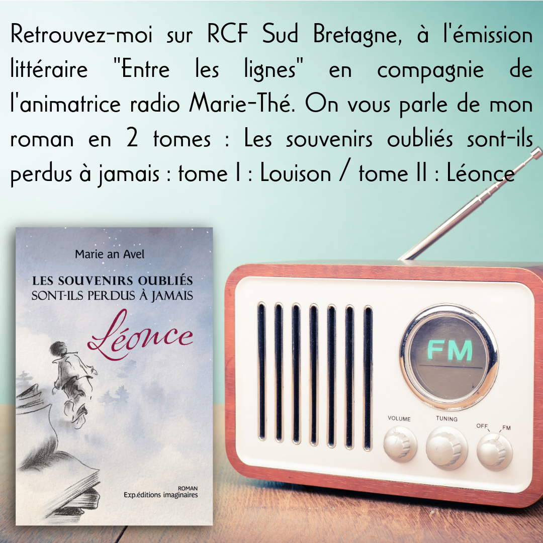 Je remercie Marie Thé, de l’émission littéraire « Entre les lignes » sur RCF Sud Bretagne, pour m’avoir reçue ce jour. Quel plaisir d’entendre son livre lu par une animatrice-lectrice aussi talentueuse. J’espère que ces lectures vous plairont et vous donneront envie de lire le livre. Mon intervention est moins expérimentée et plus hésitante (euh…) ; mais malgré tout, j’espère avoir fait de mon mieux pour vous inciter à découvrir ces deux tomes.